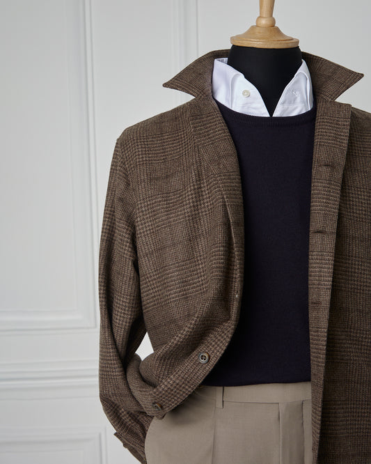 Our premium knitwear is crafted to serve as wardrobe staples to complement any look with or without our shirt jackets. Conceived as companions for all year, summer through winter, we offer you five essential designs.