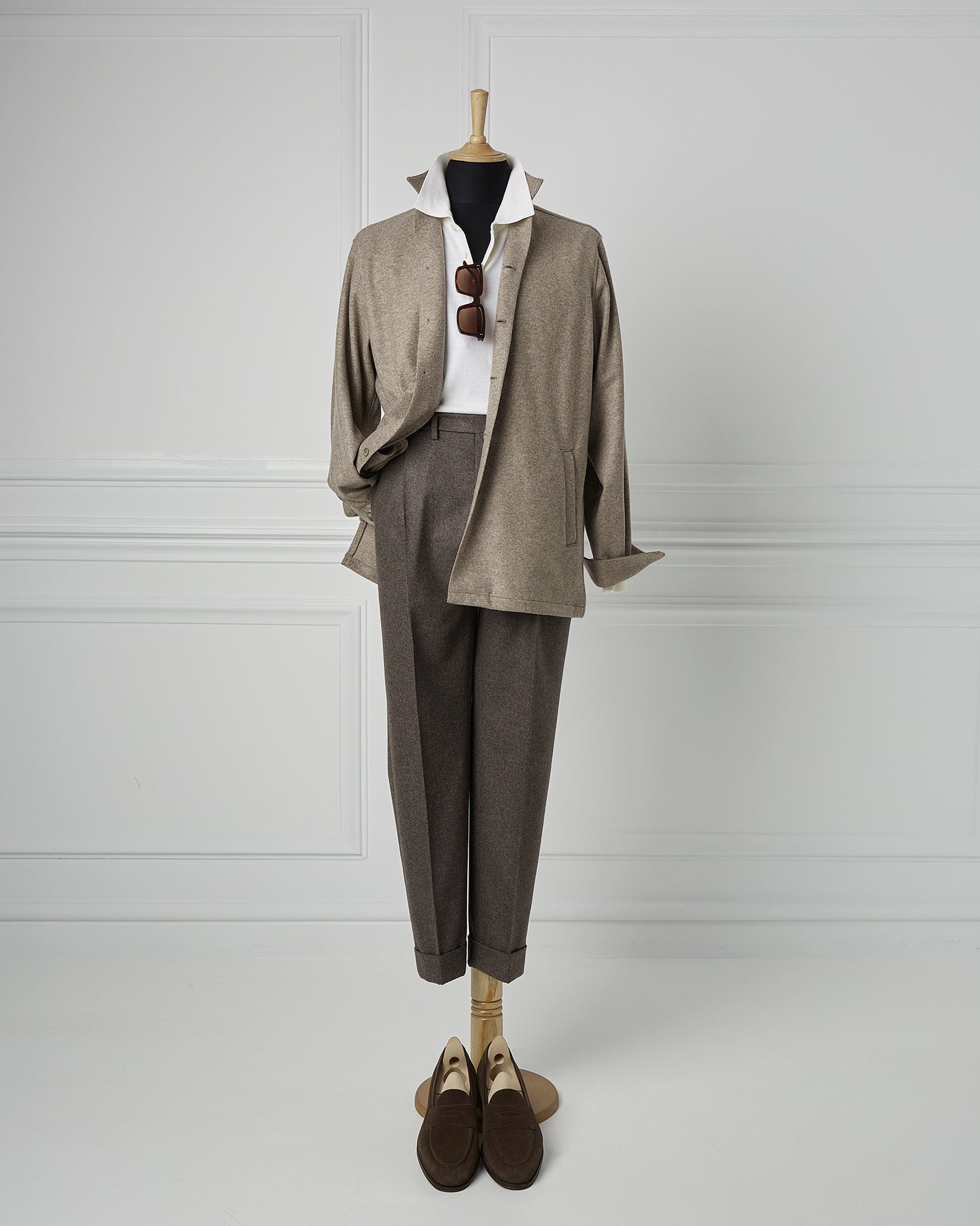 It is neither too slim nor oversized, striking a perfect balance. The length is just right, allowing it to be worn either tucked in or untucked with high-waisted trousers.